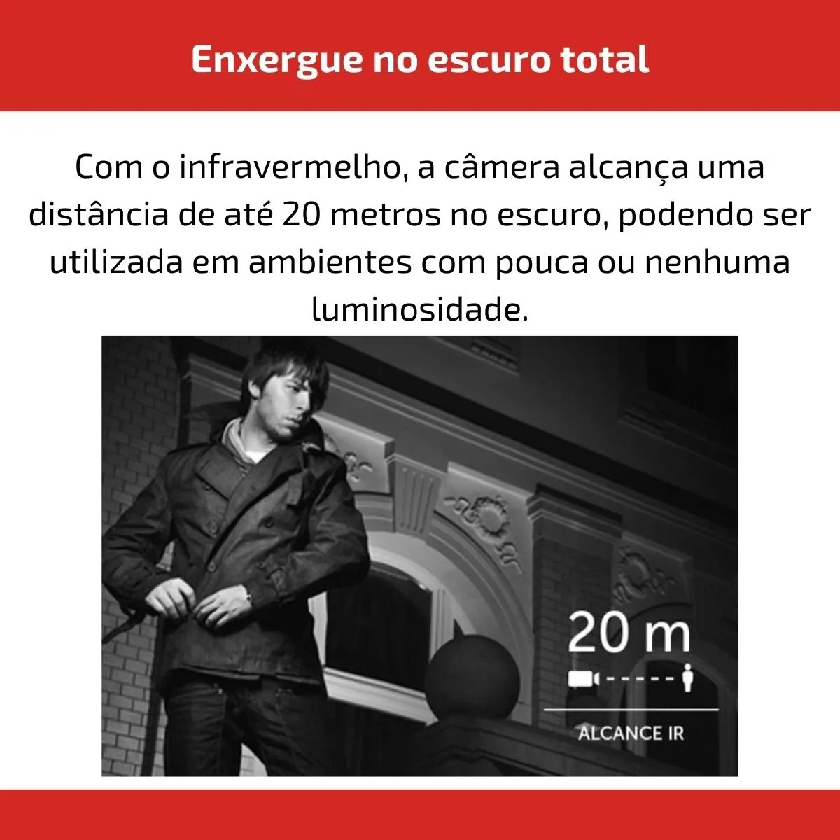 • Resolução HD 720p: Imagens nítidas e detalhadas para um monitoramento de qualidade. Infravermelho com Alcance de 20 Metros: Visão clara no escuro, mesmo em locais sem iluminação.